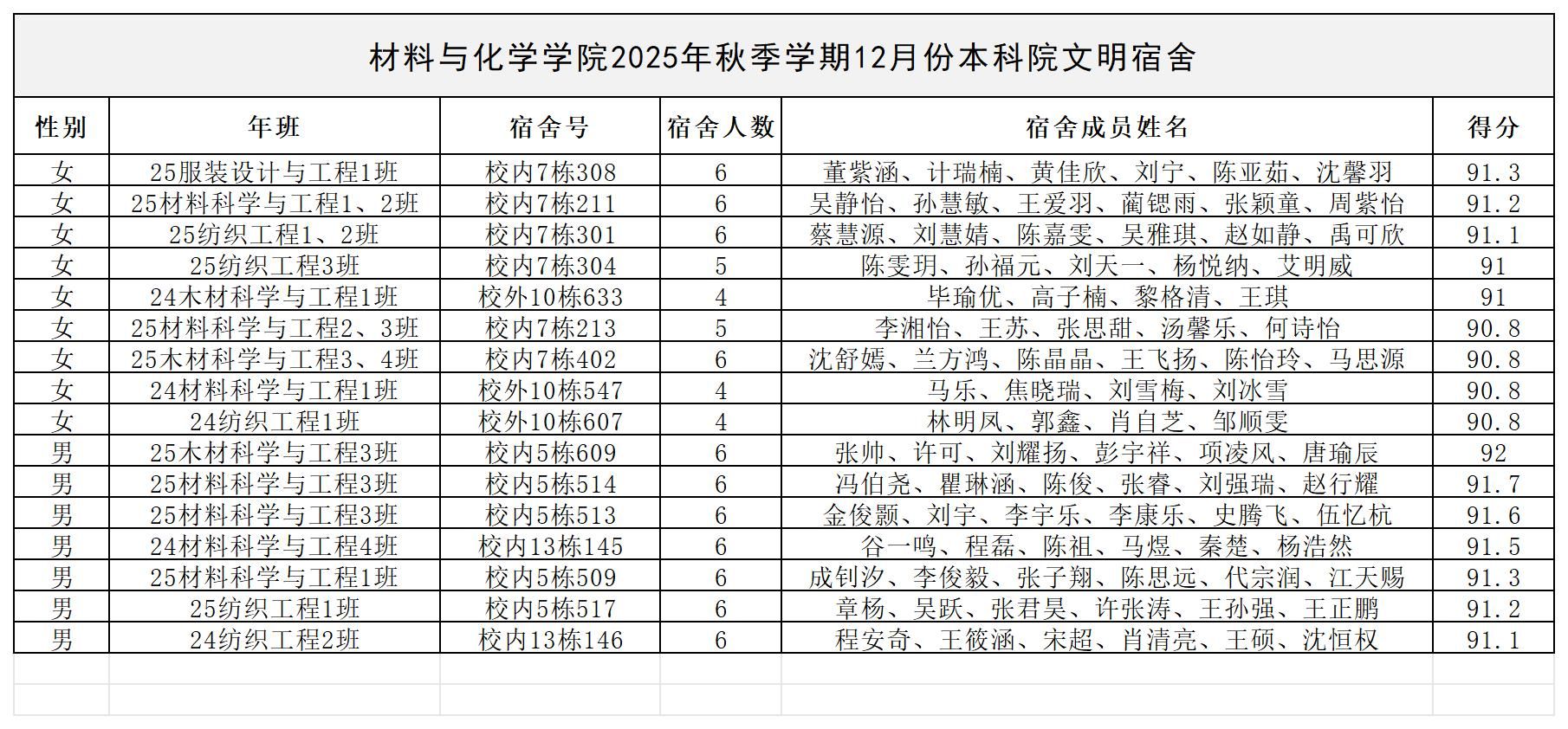 122cc太阳成集团2025年12月份院文明宿舍的公示