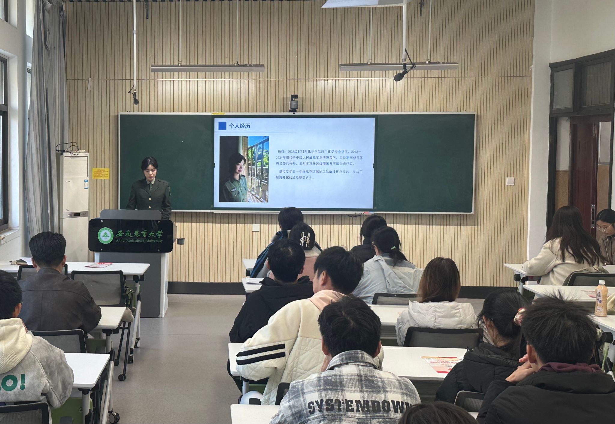 宣讲中,杨帆结合自身服役经历,为同学们勾勒出真实的军营图景。她讲述了初入军营时班长帮带、战友同行的成长蜕变,也分享了集体生日、节日活动的温情日常,还提及节日战备值守的使命担当,打破了大家对军营的刻板认知,展现出军营刚柔并济的独特氛围。