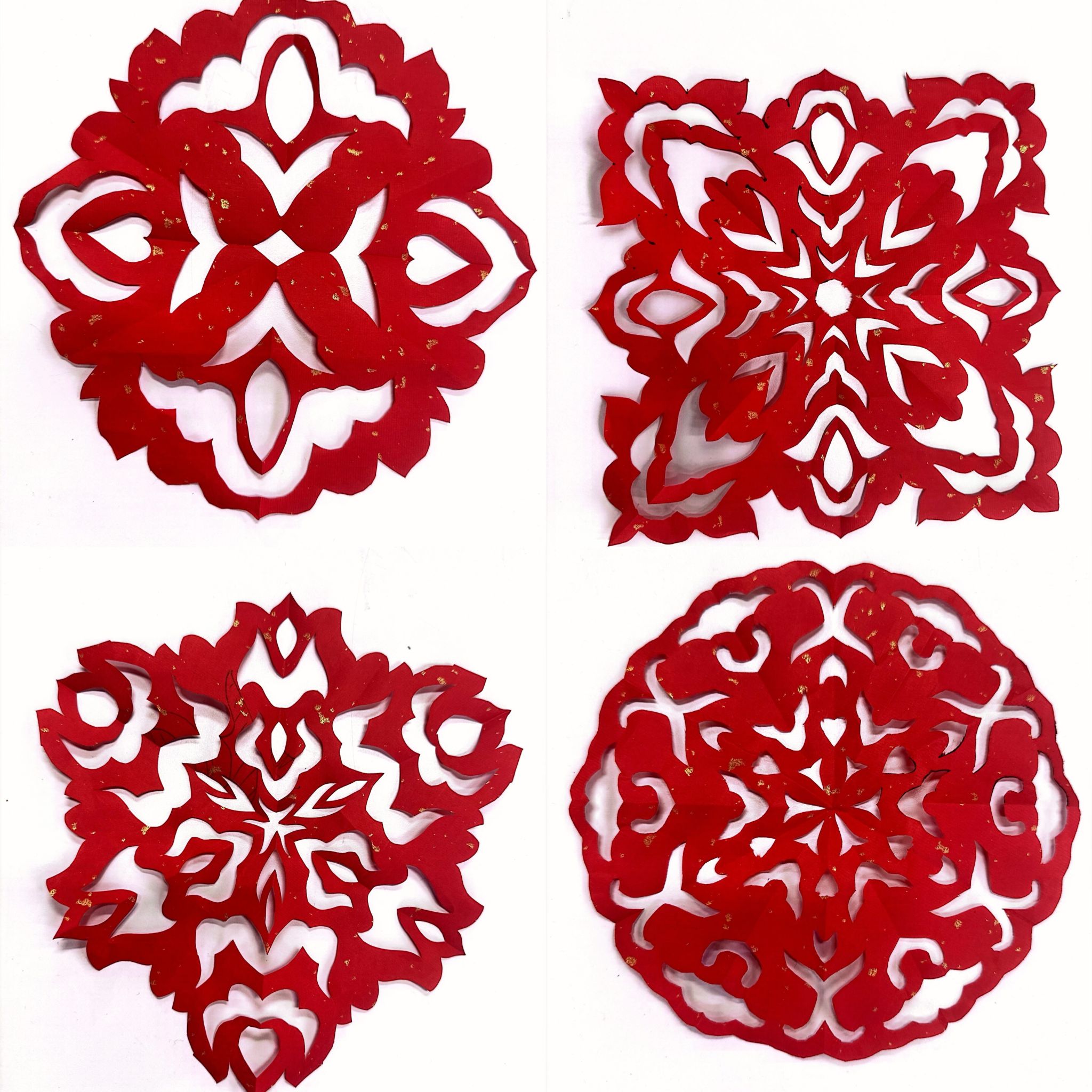 活动现场,学院准备了丰富的剪纸工具与多样的纹样模板,既有象征吉祥的传统图案,也有体现各民族特色的专属纹样,特邀服装专业老师与员工现场指导。少数民族学子们主动分享本民族的剪纸文化与民俗故事,汉族同学则积极请教剪纸技巧,大家围坐一堂、互帮互助,在指尖的翻转与剪刀的开合间,一张张普通的红纸逐渐变成精致的窗花、灵动的民族图腾、寓意团结的吉祥图案。