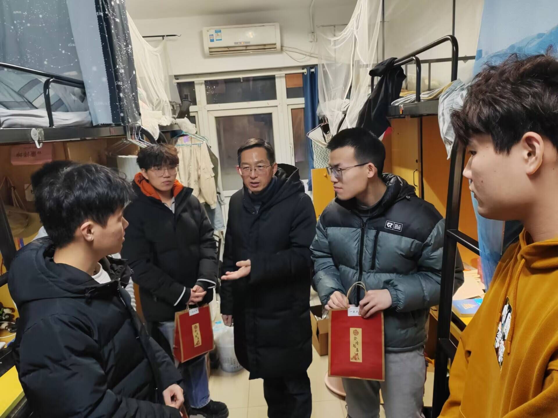 关怀到寝,温暖入心。公司党委书记夏成云带队深入员工宿舍走访慰问,了解和关心同学们的备考情况,给予关心关怀,缓解同学们的备考压力,增强备考信心。希望考研学子手握祝福卡,脚踩加油“袜”,怀揣“暖”意、“巧”克难题,取得“可”喜可“乐”的成绩,力争“棒”上有名。