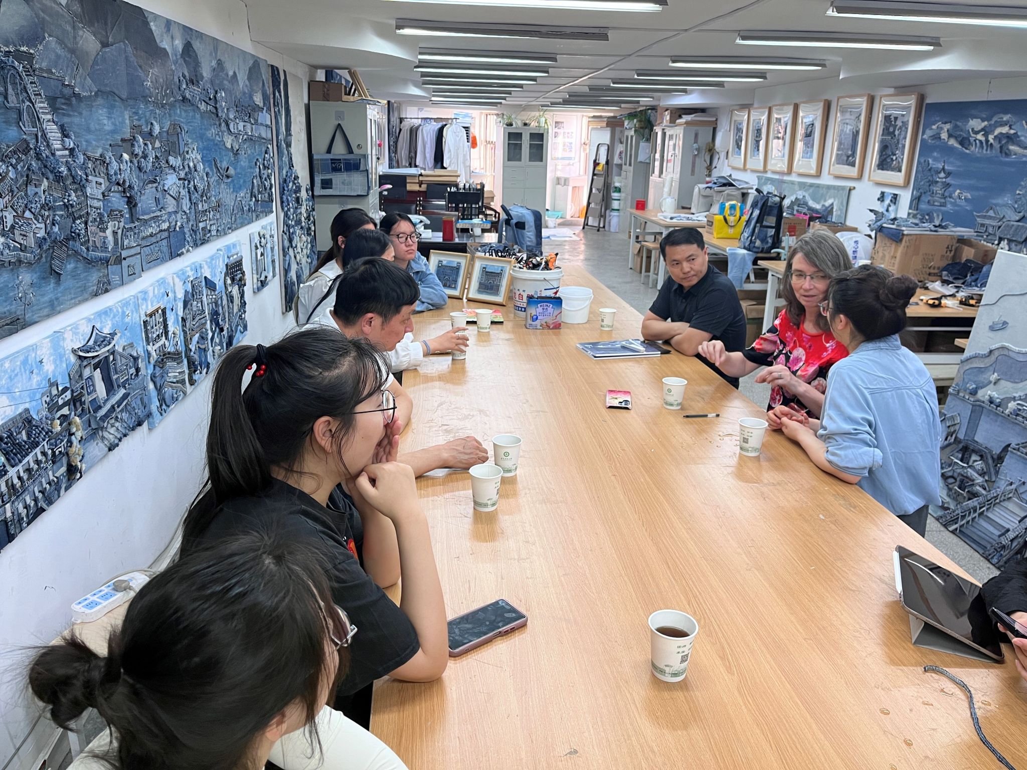 该讲座是公司开展国际交流的深入实践,让师生们与国际行业专家面对面交流,及时掌握国际流行趋势与新技术的应用,拓展了国际化创意思维。讲座结束后Barbara Lange来到学院拼布工作室,与师生们座谈交流,并对公司拼布工作室作品形成的独特风格和近些年取得的成绩给予了充分的肯定。中国纺织服装教育学会拼布艺术设计教育专业委员常务副主任杨铁刚先生也莅临工作室现场指导、交流。(文/张芝尊、武雨欣 图/武雨欣、张芝尊 编辑/张续 预审/李乾坤 审核/夏成云)