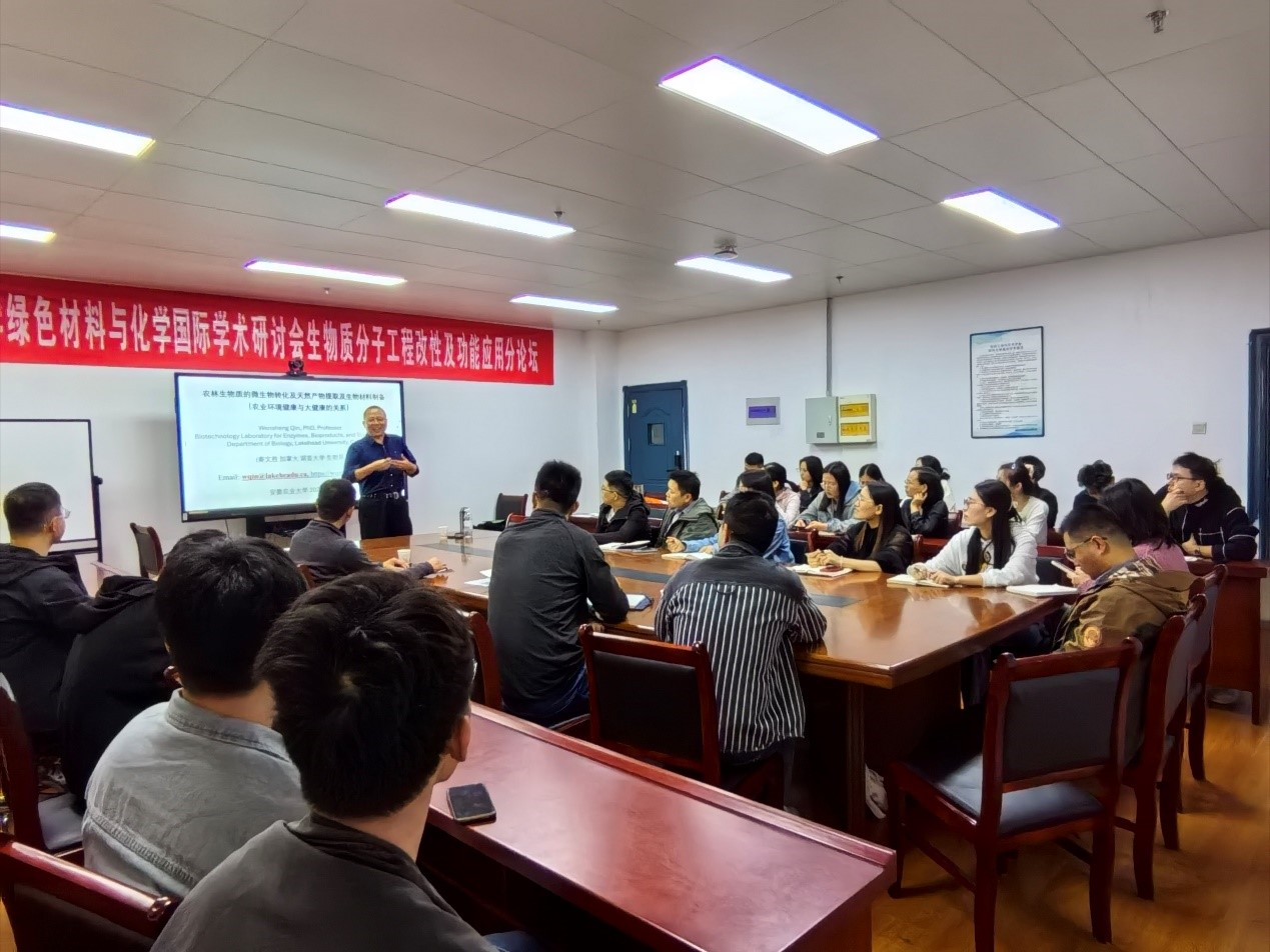 下午在中西部大楼876会议室,秦文胜教授做了题为“农林生物质的微生物转化及天然产物提取及生物质材料制备”的专题报告,用大量生动例子为公司师生介绍了他开展的微生物在金属污染生物治理、木糖醇制备、垃圾处理、微藻油脂提取等诸多广泛领域的研究。报告结束后,秦文胜教授与参会师生就报告中相关问题进行了积极的互动交流,并进行了详细的解答。