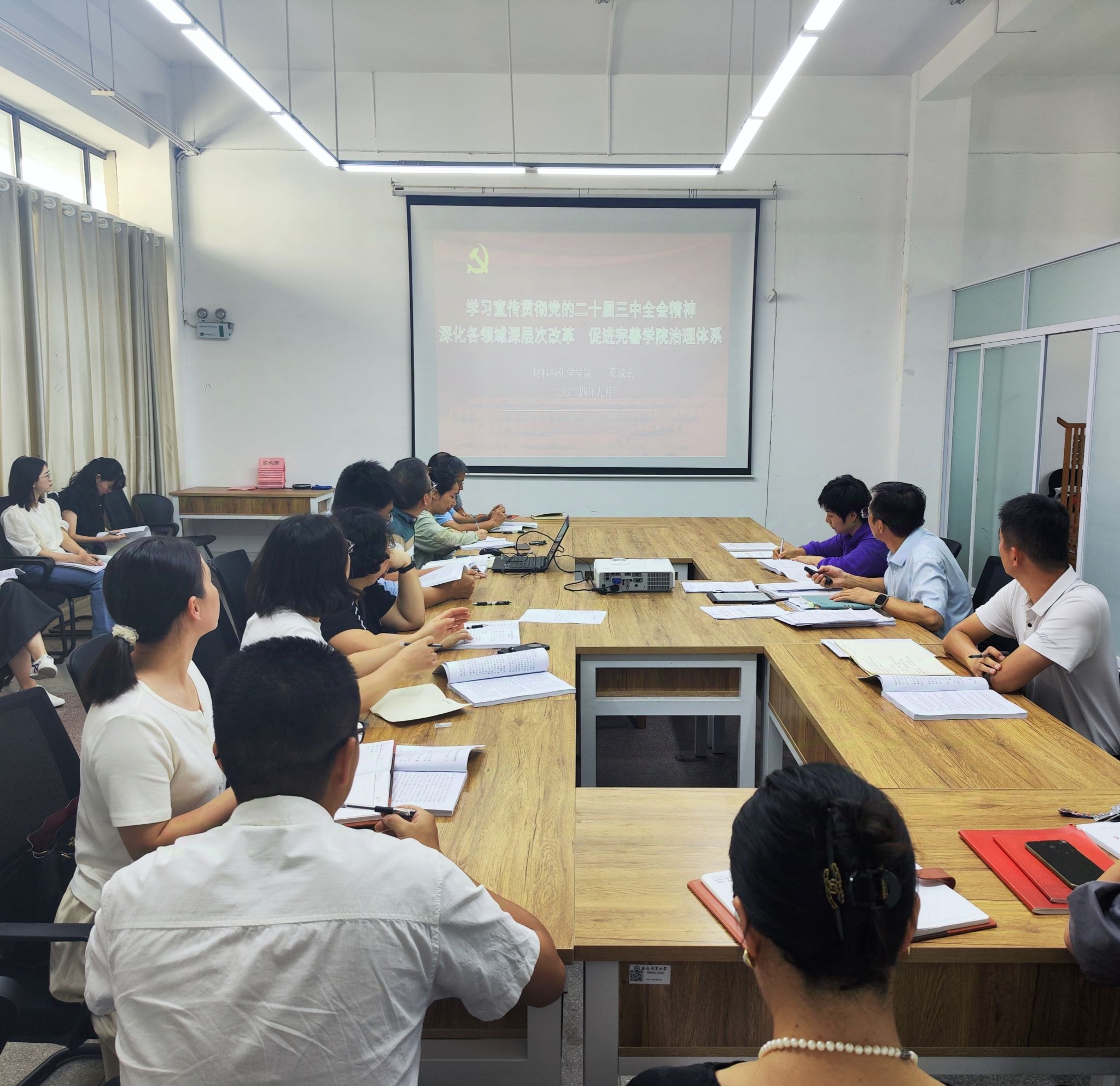 本网讯 9月29日,学院举行学习宣传贯彻党的二十届三中全会精神暨党支部书记培训会,公司党委书记夏成云作专题报告,报告题目《深化各领域深层次改革 促进完善学院治理体系》,公司党委委员、系主任、支部书记参加会议。