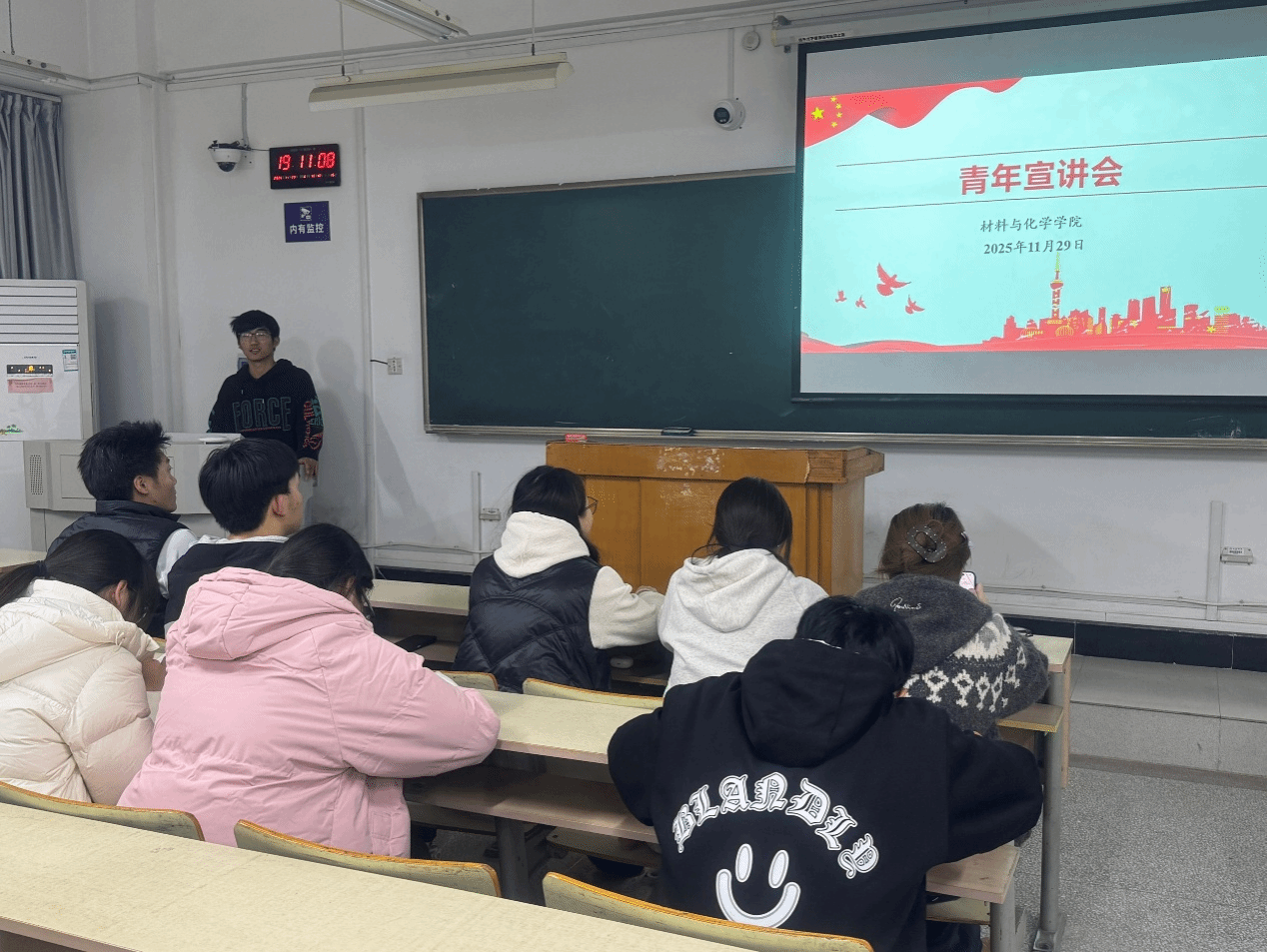 宣讲环节中,部长以“青春铸魂担使命,笃行实干建新功”为主题,结合新时代青年成长发展的时代背景,通过列举身边优秀团员在学术科研、志愿服务、社会实践中的典型案例,生动诠释了青年一代如何将个人理想融入国家发展大局,让在场同学深受触动。