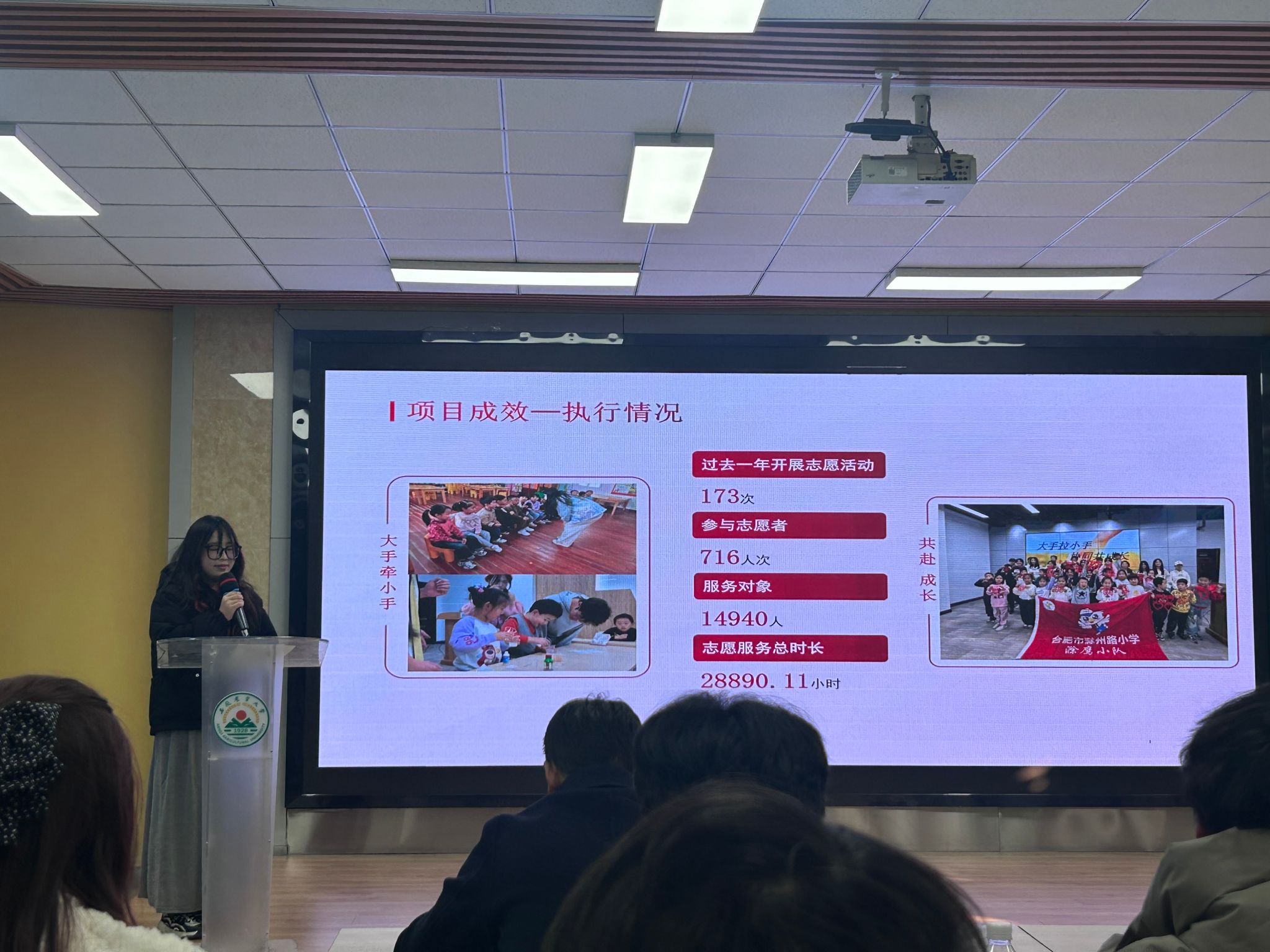 本网讯 12月3日,公司2025年志愿服务大赛暨“一院一品”“一社一品”项目验收会在校创客空间举行。公司团学负责老师及员工分会志愿服务部代表共同观摩比赛。会上,公司员工代表梁家乐以“大手牵小手,共赴成长之旅”为主题进行项目汇报,该项目最终凭借其特色与丰富内涵荣获二等奖。
