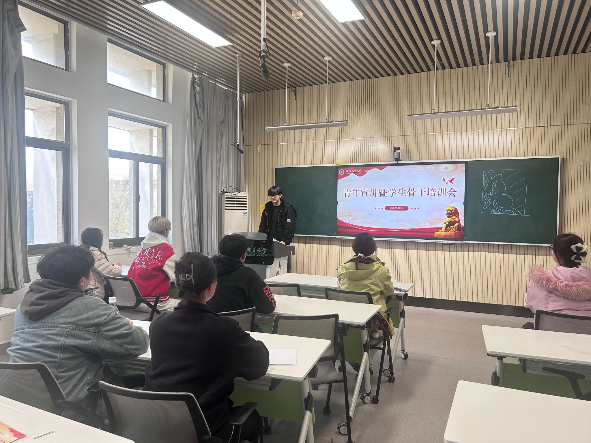 参会师生认真聆听、积极互动。团学老师在总结中指出,学习党的创新理论是青年思想武装的重中之重,希望同学们以此次宣讲为契机,持续在深学细悟上下功夫,将学习成果转化为攻坚克难、创新发展的实际行动,努力成为有理想、敢担当、能吃苦、肯奋斗的新时代好青年。