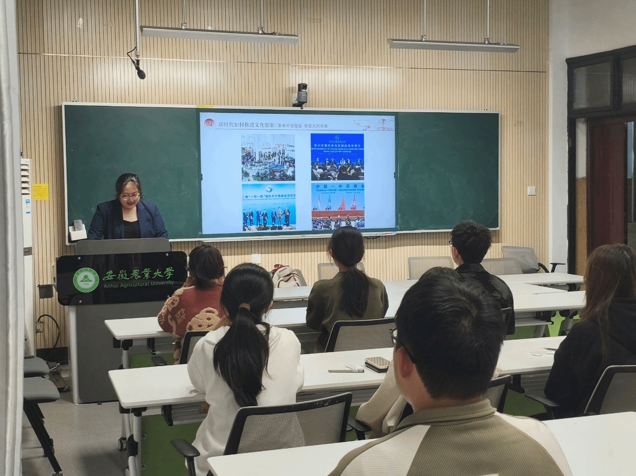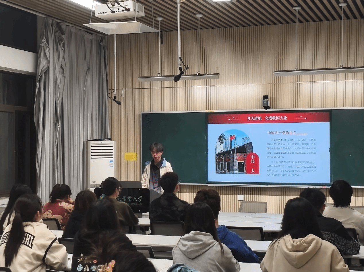 会议伊始,校宣讲队以“赓续文化之魂,助力强国复兴”为主题展开讲述。其中,宣讲团成员杨骐凡围绕党的百年光辉历程进行了生动阐述,带领同学们回顾了党一路走来的艰辛与辉煌,让同学们对党的发展历程有了更深刻的认识。庄冰婕则聚焦习近平总书记关于宣传文化的重要指示,详细解读了其内涵和重要意义,使同学们对宣传文化工作的重要性有了更清晰的理解。通过此次宣讲,同学们进一步增进了对党的政治认同、思想认同、理论认同、文化认同和情感认同,深刻认识到树立文化自信、坚定理想信念是立身之本。