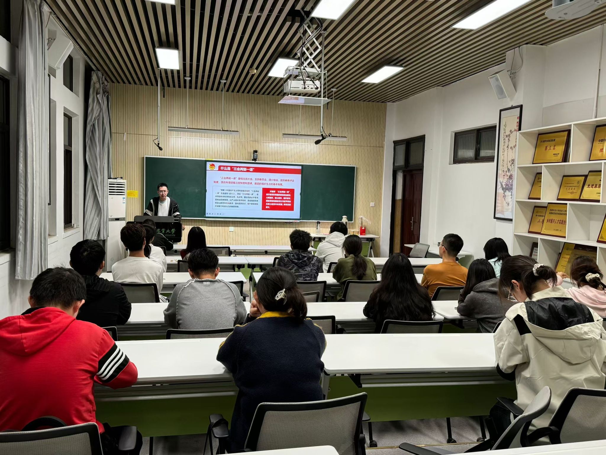 本网讯 11月22日晚,学院于材化楼4A02开展理论宣讲暨新生团干培训活动。此次活动聚焦新生团干部专业知识与技能提升,着力强化其组织管理能力与团队协作精神。院团委老师、院员工会部门负责人与会,24级本科各班班长、团支书参与培训。