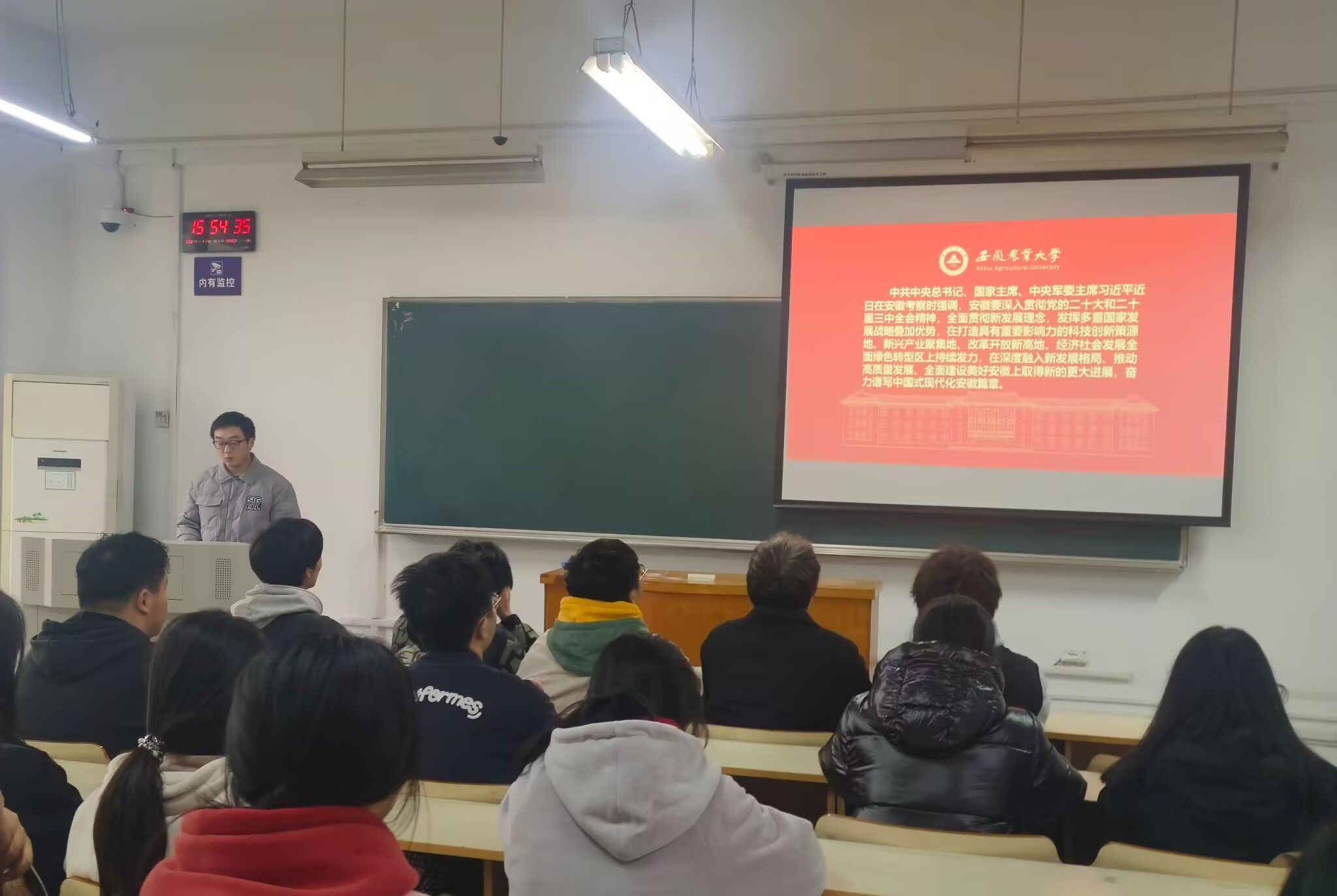 活动以团课学习为主要形式,聚焦习近平总书记重要讲话内容,深入剖析其中对安徽发展的战略指引以及对青年成长成才的殷切期望。在团课学习过程中,同学们深刻领悟到讲话精神对于安徽发展布局的重要意义,也清晰认识到青年一代作为新时代建设者和接班人,在推动安徽高质量发展进程中肩负的历史使命与社会责任。