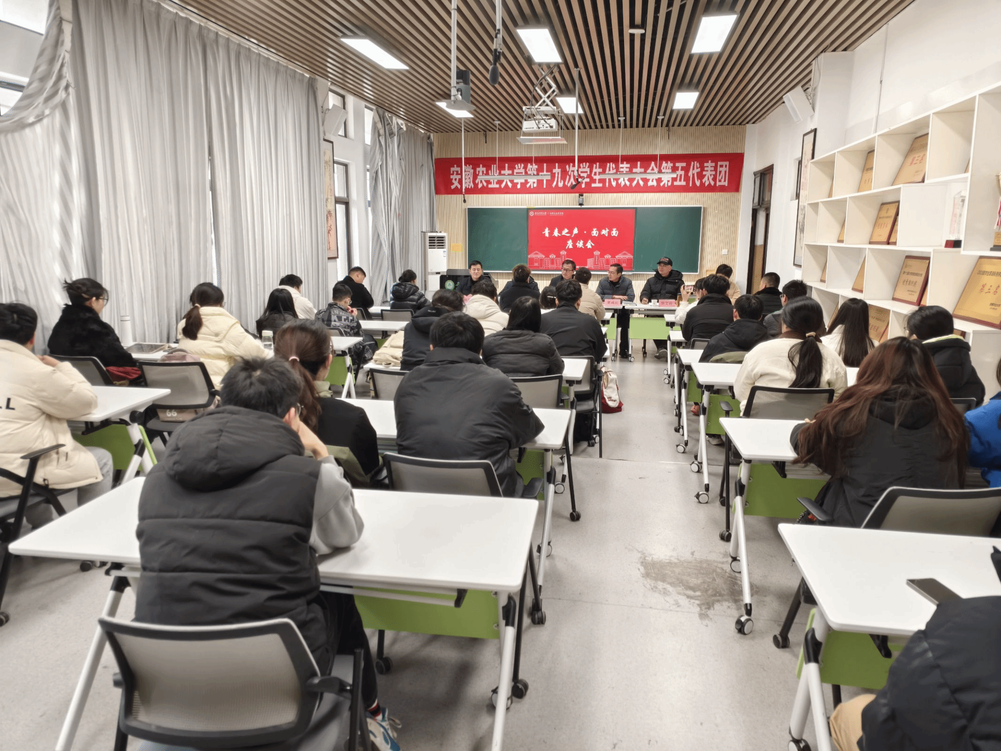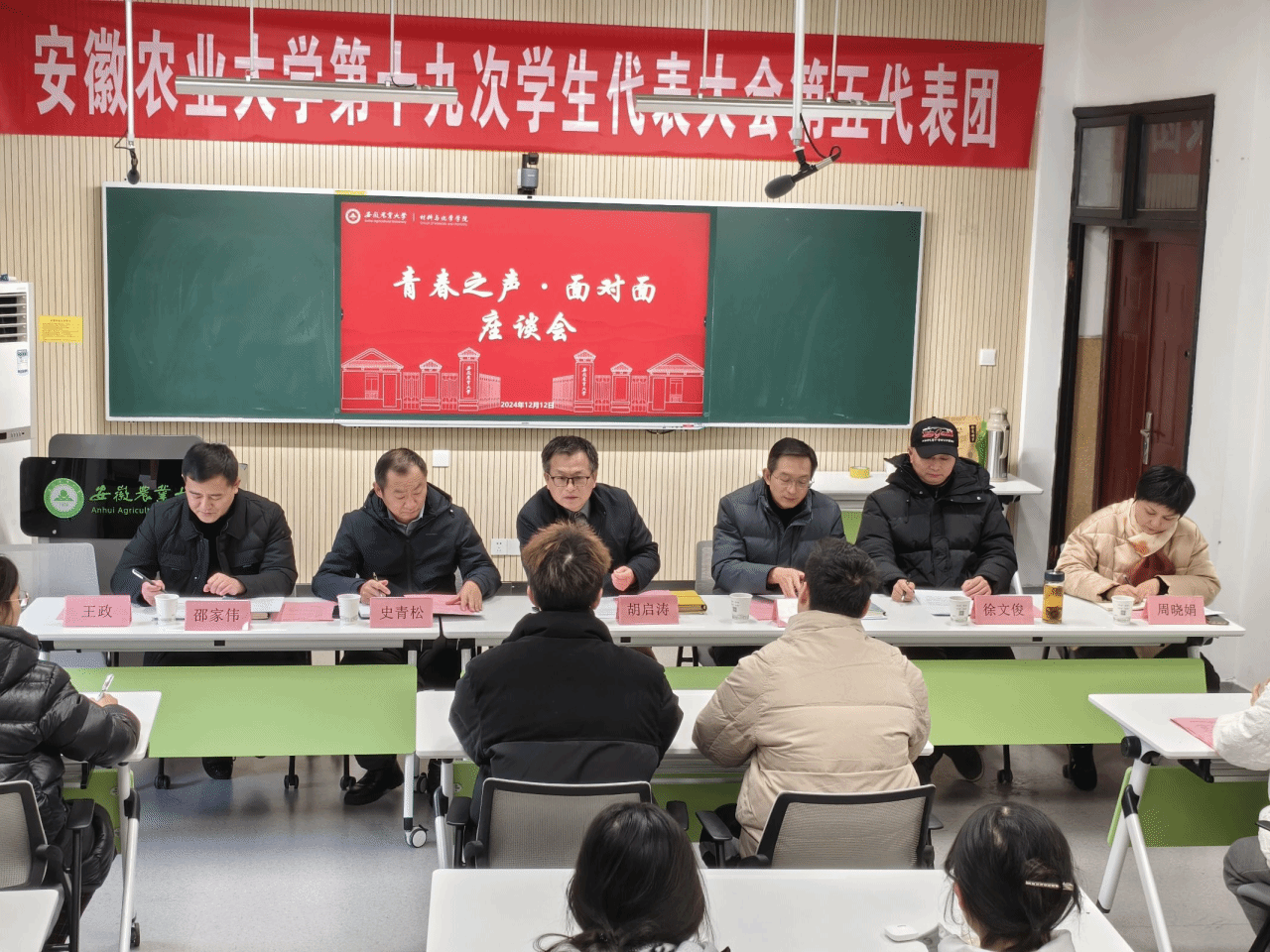 座谈环节,同学们迫不及待地提出关于饮食、住宿、医疗等方面的问题,总务部负责老师一一回应,并表示会努力推进信息化建设,提供更加坚实的后勤保障。会上不断响起热烈的掌声,同学们热情高涨,气氛热烈。此次会议不仅拉进了学校与同学们之间的距离,加强了同学们对学校后勤部门的了解和理解,更增强了员工的幸福感和获得感。(图/万正涛 文/王宁静 余成运 编辑/余成运 预审/代锐 审核/周晓娟)