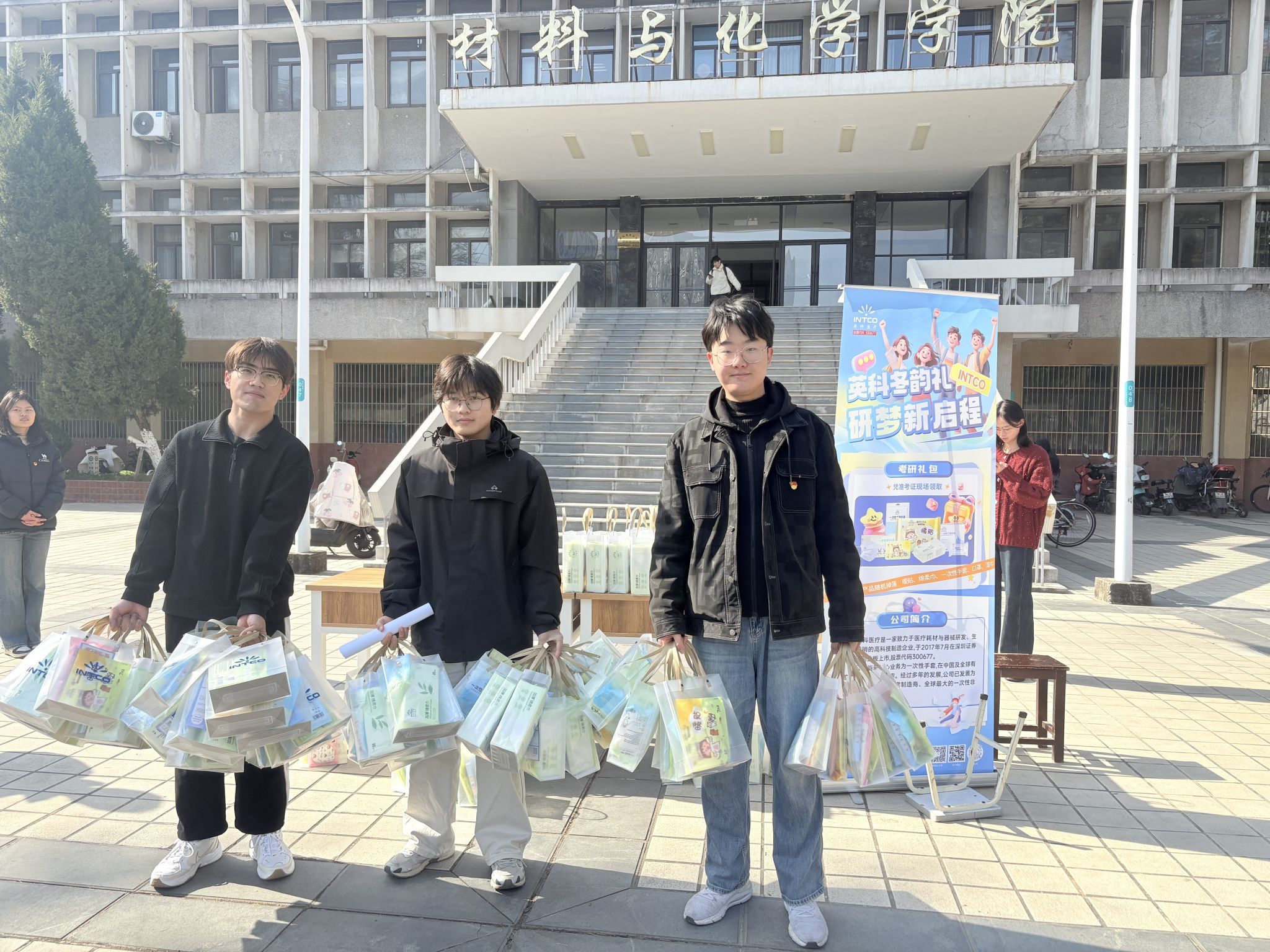 本网讯 寒冬已至,研考在即。12月15日,122cc太阳成集团联合英科医疗科技股份有限公司,在材化楼广场开展“冬日送温暖”考研关怀活动,为正在紧张备考的学子发放暖心礼包,助力他们以更好的状态迎接挑战。