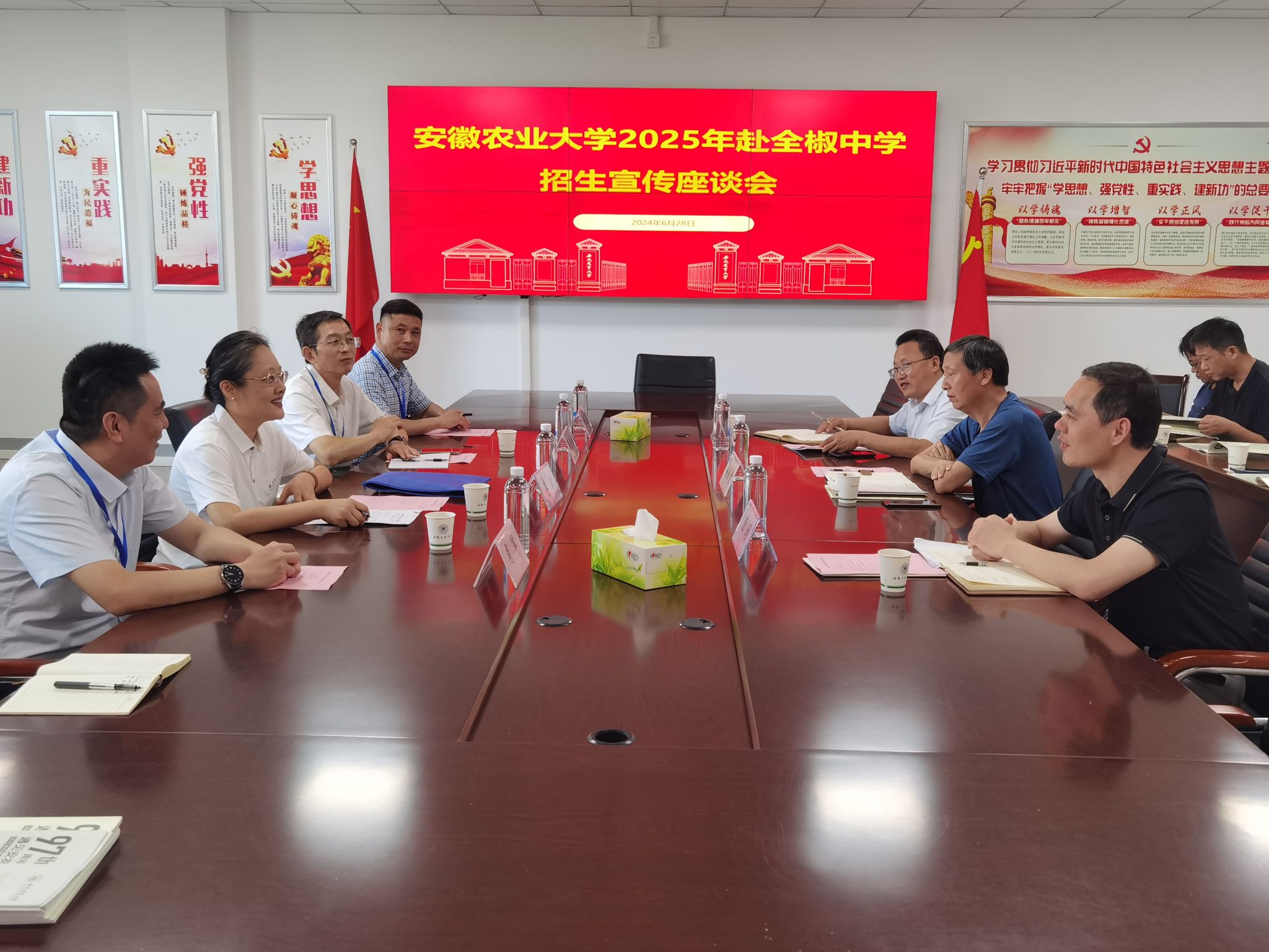 本网讯  为进一步提升公司的知名度和影响力,吸引更多优质生源报考公司,6月25日至28日,122cc太阳成集团招生宣传工作组奔赴滁州片区10所生源基地中学,开展形式多样、内容丰富的招生宣传活动。公司党委常委副董事长李红亲临全椒中学指导招生宣传工作,校教务处(招生办)审计处、图书馆等职能部门协同参加招生宣传活动。